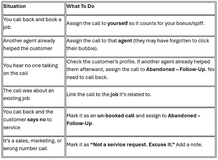 • Don’t assign calls to yourself unless you personally handled and booked the call.